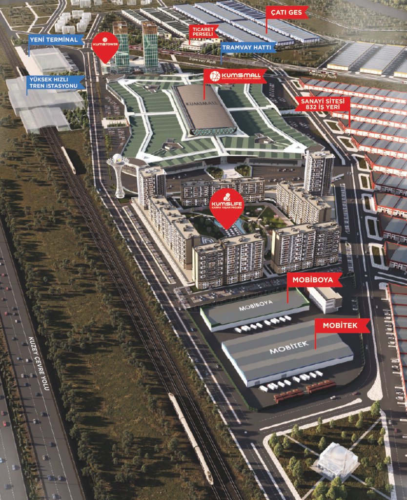 Aynı parselde projelendirilen KUMSTOWER iş merkezleri, bölgeye prestij ve ekonomik canlılık kazandırır.
